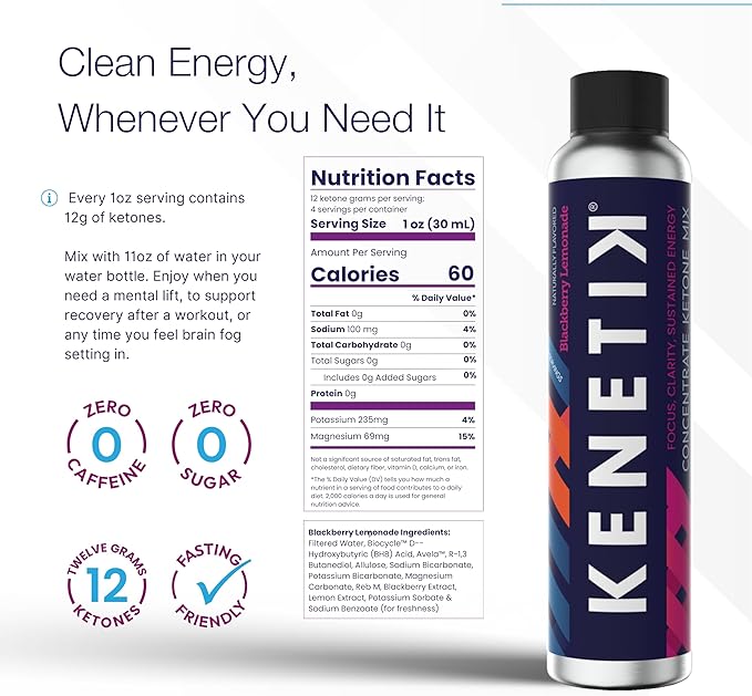 • BOOSTS CLARITY & FOCUS: Raise ketones to the optimal level for increased cognitive performance, focus and mental clarity. Kenetik is the only ketone drink recommended by the American Brain Council.